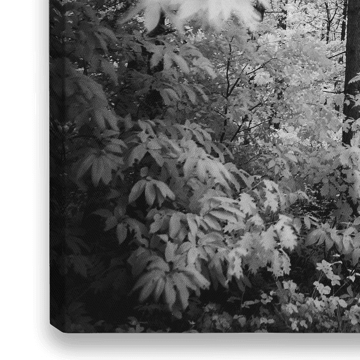 Een omgevallen boom verspert de doorgang in de bossen rond Mook. Het bijzondere zwart-wit is verkregen door de foto allene te maken met infrarood licht. Hiervoor wordt doorgaans een filter gebruikt dat alle licht weglaat en alleen infrarood doorlaat. Het geeft een vreem maar ook mooi beeld in zwart-wit.
