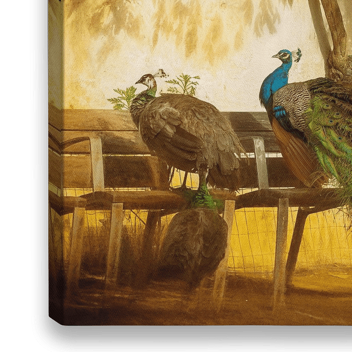 2 pauwen op bankje onder een boom. Evora, Spanje