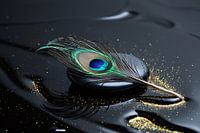Pauwenveer op glanzend zwart van Art & Soul Creations