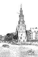 PentekeningAmstel Montelbaanstoren Amsterdam Nederland Tekening Lijntekening van Hendrik-Jan Kornelis