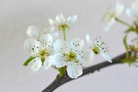 Snoeiafval uit een perenboomgaard mee naar huis genomen en in een vaas gezet. De bloesem opent prachtig en door macrofotografie weergegeven.