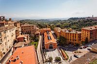 Perugia in de Italiaanse regio Umbrië is gebouwd op heuvels. Vanuit de stad heb je een prachtig uitzicht op het omliggende landschap.
