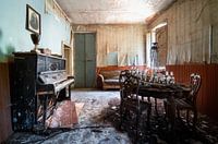 Dit is een foto van een prachtige vervallen kamer die ik heb gevonden in een verlaten huis. Zoals je kunt zien is er brand in huis geweest. De meeste kamers waren niet toegankelijk vanwege stapels afval of ingestorte delen van het huis.