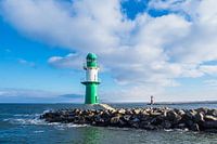 Koop de foto Pier en piertorens aan de Oostzeekust in Warnemünde van Rico Ködder op canvas, aluminium dibond, (ingelijste) fotoprint, behang en ArtFrame, op maat geprint in Fine-Art kwaliteit.