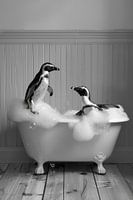 Koop dit vogel kunstwerk Pinguïn in bad - een betoverend badkamerkunstwerk voor je toilet van Poster Art Shop op canvas, aluminium dibond, (ingelijste) fotoprint, behang en ArtFrame, op maat geprint in Fine-Art kwaliteit.
