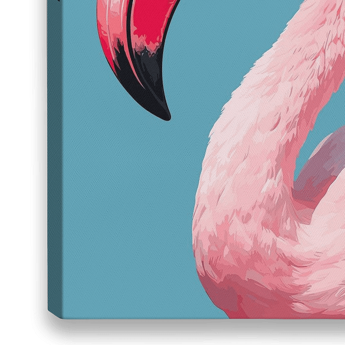 Portret van een elegante roze flamingo op een helder blauwe achtergrond. Met de prachtige warme kleuren en een mooi contrast is dit echt een eyecatcher.
