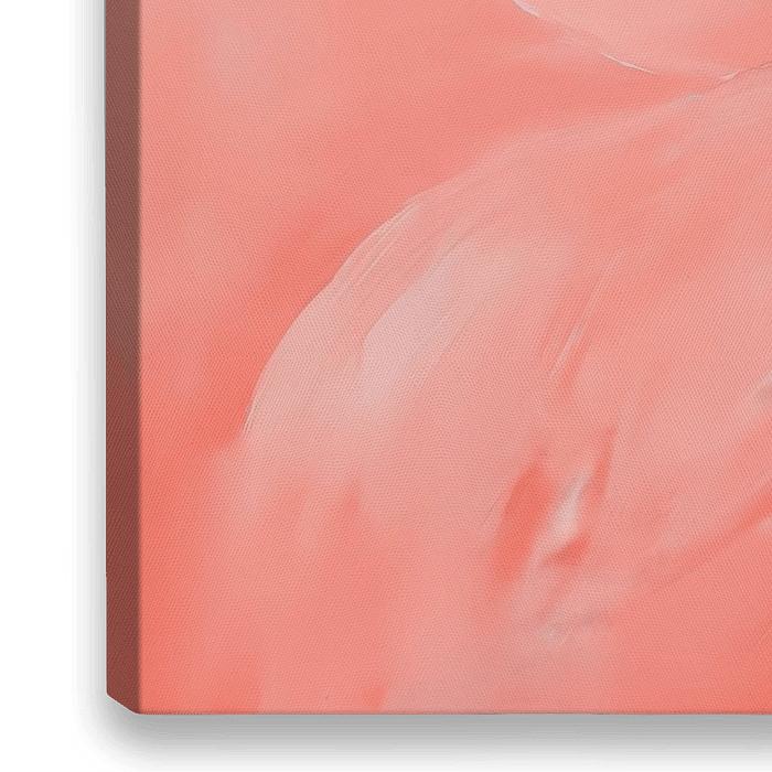 Dit schilderij straalt een zachte, dromerige sereniteit uit. Op een warme, zalmroze achtergrond ontvouwt zich een delicate bloem met grote, haast doorschijnende bloemblaadjes. De bloemblaadjes zijn geschilderd met een vloeiende toets, alsof ze zachtjes dansen in een lichte bries.