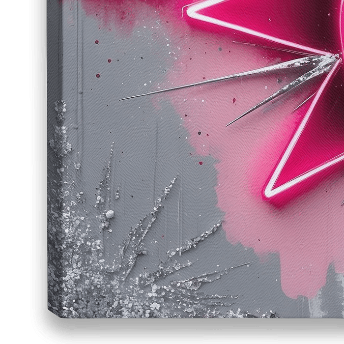 Pinkmas Bauble – Neon Glam Statement is geen gewone kerstdecoratie. Dit kunstwerk neemt het klassieke kersticoon — de kerstbal — en blaast het op in knalroze neon, glitterexplosies en rauwe energie. Met een felle roze tint, zilveren sterren en spetters tegen een industrieel grijze achtergrond straalt deze print alles uit wat Pinkmas…