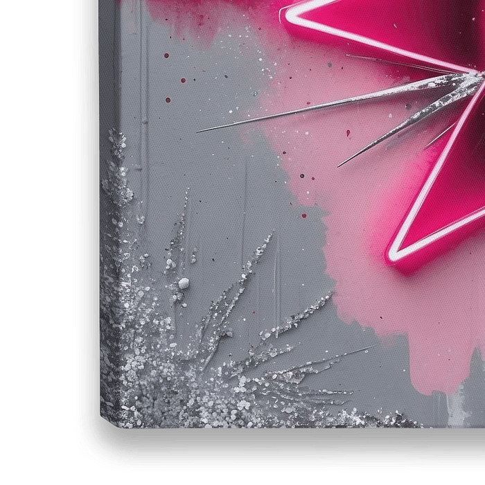 Pinkmas Bauble – Neon Glam Statement is geen gewone kerstdecoratie. Dit kunstwerk neemt het klassieke kersticoon — de kerstbal — en blaast het op in knalroze neon, glitterexplosies en rauwe energie. Met een felle roze tint, zilveren sterren en spetters tegen een industrieel grijze achtergrond straalt deze print alles uit wat Pinkmas vertegenwoordigt: lef, stijl en een dikke middelvinger naar brave tradities.