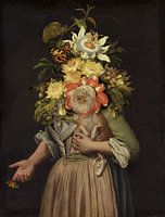Een bewerking van het schilderij "A Woman with a Dog" (“Pitocchetto”) uit ca. 1740 van de Italiaanse kunstschilder Giacomo Ceruti. De portretten van de hond en van de vrouw zijn deels vervangen door details uit het schilderij "Passiebloemen" (1812) vervaardigd door de Oostenrijkse kunstenaar Ferdinand Bauer.