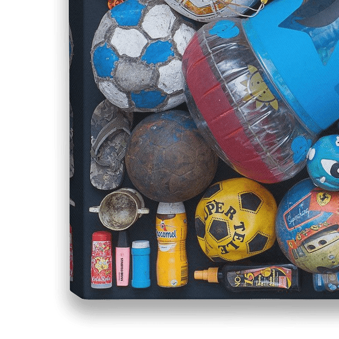Een compositie samengesteld uit een veelheid aan kinderspeelgoed die in Amsterdam uit het water is gevist.