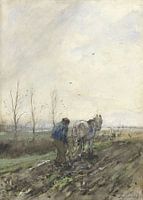 Koop Ploegende boer, Jacob Maris als reproductie op canvas, aluminium dibond, (ingelijste) fotoprint, behang en ArtFrame, op maat geprint in Fine-Art kwaliteit.