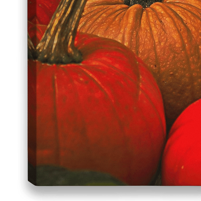 Close-up van een groep pompoenen met verschillende kleuren.