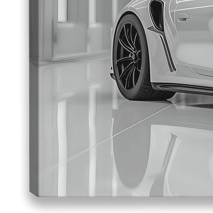 Op de zwart-wit foto straalt een Porsche 911 GT3 pure kracht en elegantie uit. De gestroomlijnde carrosserie, met zijn agressieve lijnen en aerodynamische vormen, komt scherp naar voren. De grote achtervleugel en brede luchtinlaten benadrukken zijn sportieve aard. De glimmende velgen en het iconische Porsche-embleem voegen een vleugje…