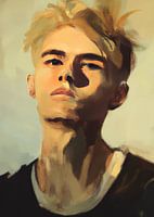 Portret " De blonde jongen" van een jongeman met blond haar tegen een lichte achtergrond.