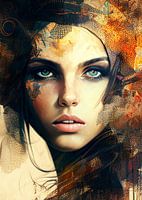 Modern portret in aardetinten van een jonge vrouw in art nouveau stijl. Digitale kunst. Dit portret is een echte eyecatcher aan je muur!