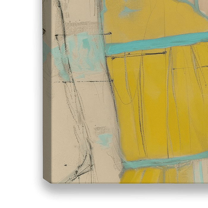 Portret in geel en turquoise, illustratie. Een bijzondere blikvanger voor je interieur! Kies zelf het formaat en materiaal bij dit werk en maak het helemaal passend naar wens.