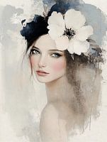 Portret in pastelkleuren met een poëtische uitstraling. Een bijzondere blikvanger voor je interieur. Modern en chic. Kies zelf het formaat en materiaal bij dit werk en maak het helemaal naar wens.