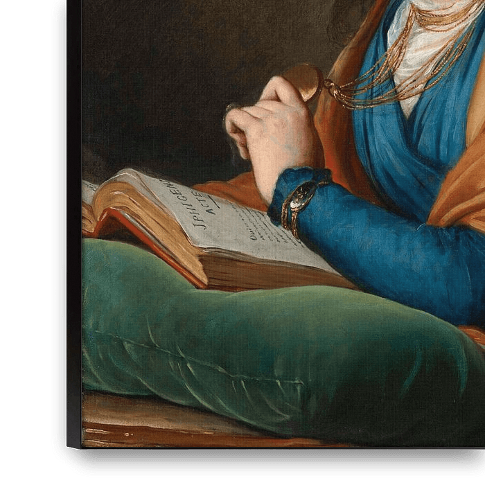 Elisabeth Louise Vigée-Lebrun, geboren in een artistieke familie, volgde tekenlessen van haar vader en begon als tiener te werken als professioneel kunstenaar. Ze werd de officiële portretschilderes van Koningin Marie Antoinette en in 1783 werd ze toegelaten tot de Koninklijke Academie voor Schilderkunst en Beeldhouwkunst. Gedwongen in ballingschap bij het begin van de Franse Revolutie bleef Vigée-Lebrun een gewilde portretschilderes. Toen ze in Rusland woonde, schilderde ze dit opvallende portret van Natalia Zacharovna Kolycheva, een lid van de adel. Vigée-Lebrun presenteerde haar oppas als een verfijnde en opgeleide vrouw: ze leest een Frans toneelstuk en draagt modieuze kleding, gouden juwelen en een classicistische haaraccessoire. Vigée-Lebrun werd gevierd en bekritiseerd voor het idealiseren van haar sitters door de soepele penseelvoering, de rijke tinten en de zachte verlichting die hier zo kundig worden gedemonstreerd.