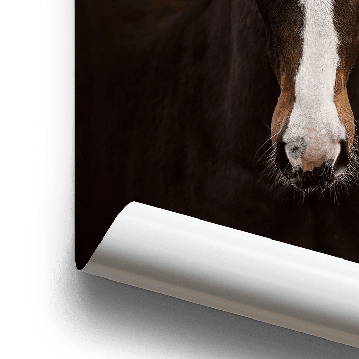 De eenvoud van deze foto maakt het juist zo krachtig. De donkere achtergrond zorgt ervoor dat alle aandacht naar het veulen gaat. De lichte contouren en subtiele details in de vacht komen hierdoor prachtig naar voren. Je ziet de fijnere haartjes, de fluweelzachte neus en die kenmerkende, onbevangen blik die jonge paarden zo speciaal maakt.
