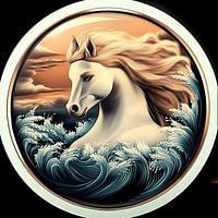 Bekijk "Poseidon's Whisper", een betoverende samensmelting van mythe en oceanische elegantie. Dit werk toont een goddelijke zeehengst die tevoorschijn komt uit de bulderende golven onder een brandende avondhemel. Met zijn vloeiende manen die lijken op gouden zeewier en ogen die verwijzen naar oude kennis, is deze hybride godheid zowel…