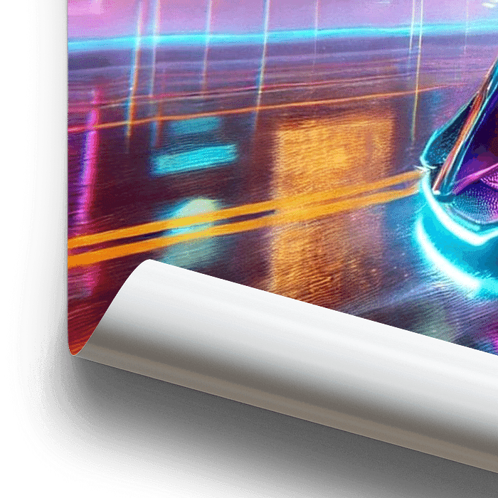 Dompel jezelf onder in de futuristische wereld van cyberpunk met deze adembenemende digitale poster! Het motief toont een unieke supercar die door de neonverlichte straten van een futuristische stad racet. De omgeving is gevuld met gloeiende reclameborden, reflecterende straten en…