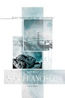 Klassiek stadsgezicht vanuit San Francisco in een modern design. Coördinaten en verdere informatie worden samengevoegd met de Baker Beach en de Golden Gate Bridge om een minimalistische totaalindruk te creëren.