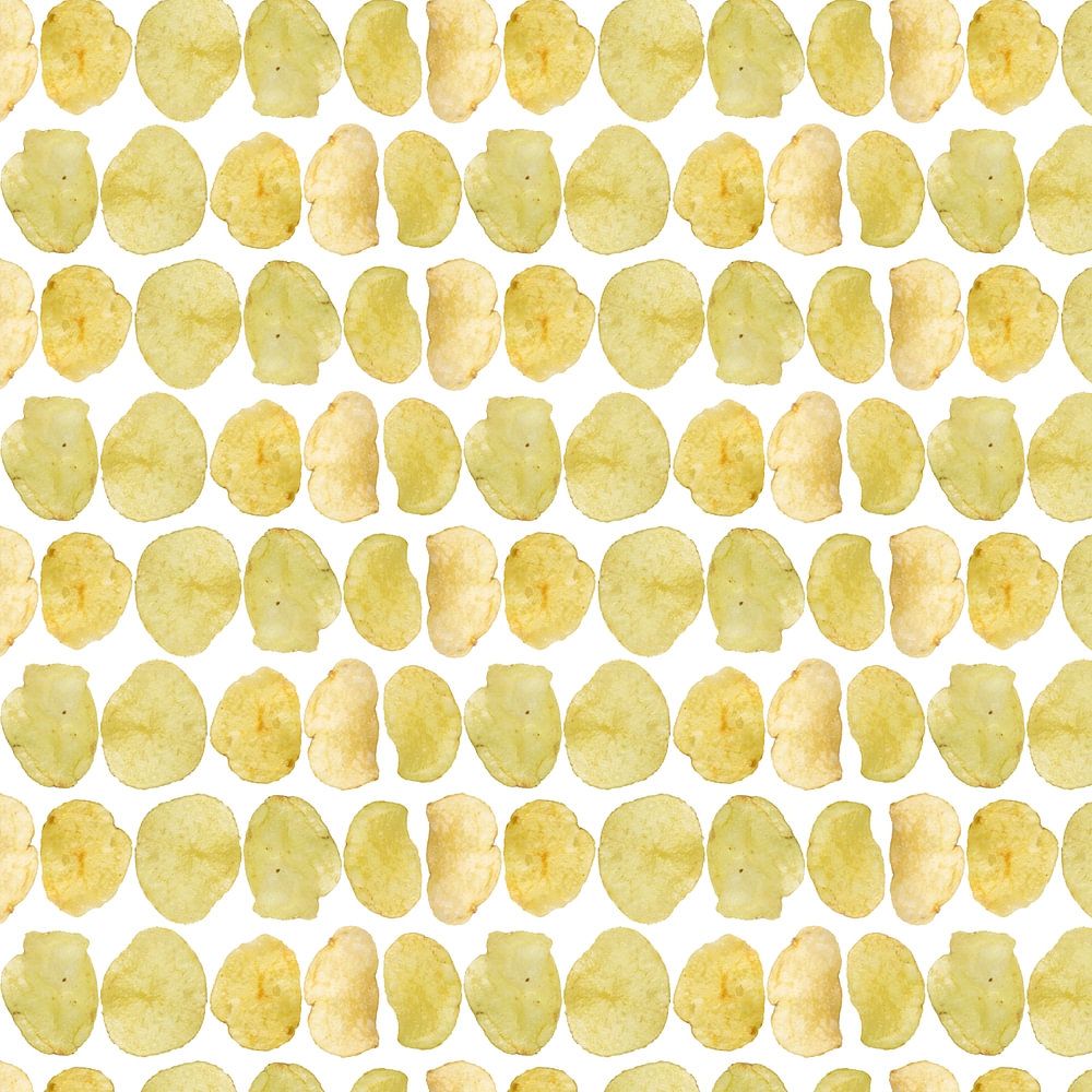 Koop dit schilderij Potato chips/crisps pattern van Grüntyers . als reproductie op canvas, aluminium dibond, (ingelijste) fotoprint, behang en ArtFrame, op maat geprint in Fine-Art kwaliteit.