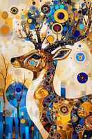 Een prachtig decoratief hert in de stijl van een schilderij dat doet denken aan Klimt.