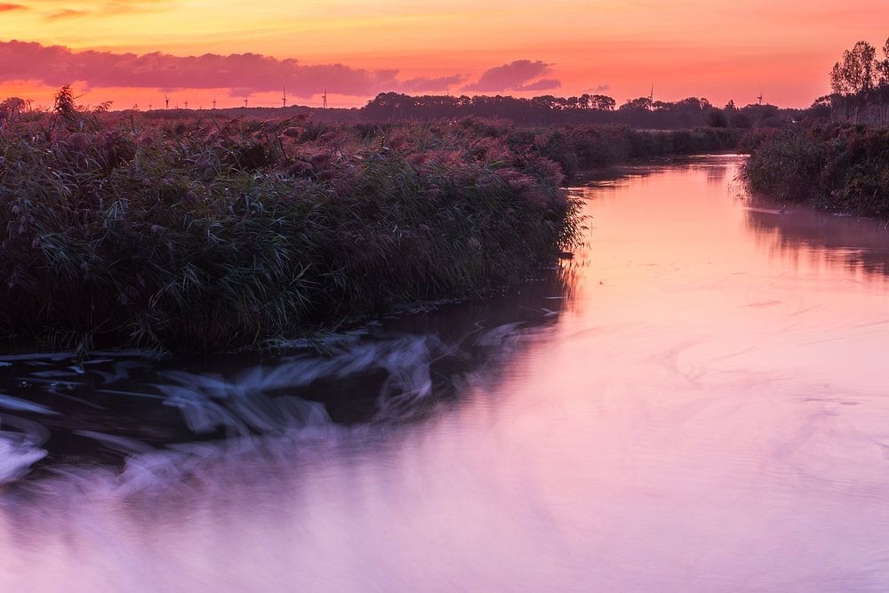 Natuurgebied Kruiszwin in Anna Paulowna is op loopafstand van waar ik woon. Dus de wekker gezet om 06:00 uur en hopen dat de weersvoorspelling uitkomt. Ik sta op een plateau boven een stuw. Door het gebruik van een lange sluitertijd komt het binnenstromende water tot rust, wat beter past bij de beleving op dat moment: complete rust en een sereen begin van een nieuwe dag.