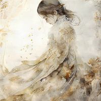 Aquarel portret van een meisje in beige,goud en crème tinten.