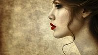 Profiel van een jonge vrouw met rode lippenstift van Frank Heinz