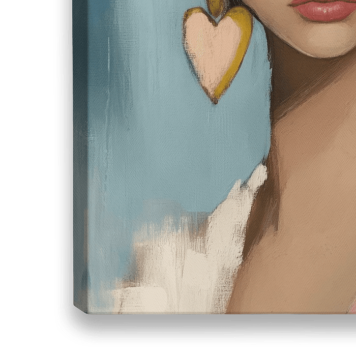 Deze stijlvolle dame straalt pure elegantie uit. Met haar gouden hartjes-oorbellen kijkt ze alsof ze precies weet hoe je een statement maakt zonder een woord te zeggen. Haar zachte kleuren en serene blik geven haar een moeiteloos chique vibe, alsof ze de rust zelve is in een wereld vol chaos.