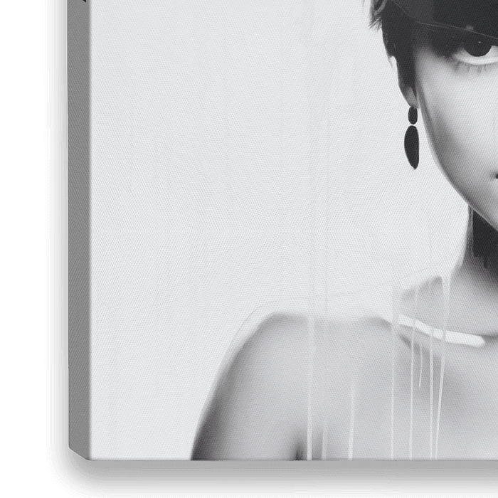 Een abstract portret van een jonge koningin, zwart/wit met gouden kroon.