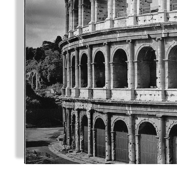 De historische buitengevel van het Colosseum. Een klassiek monochroom uitzicht vanuit Rome.