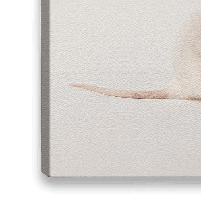 Een witte rat zit lekker te smikkelen uit een eierdopje.