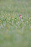 Grey Partridge / Rebhuhn ( Perdix perdix ) hiding in a field of winter wheat, stretching its neck, watching curious, endangered species, wildlife, Europe.