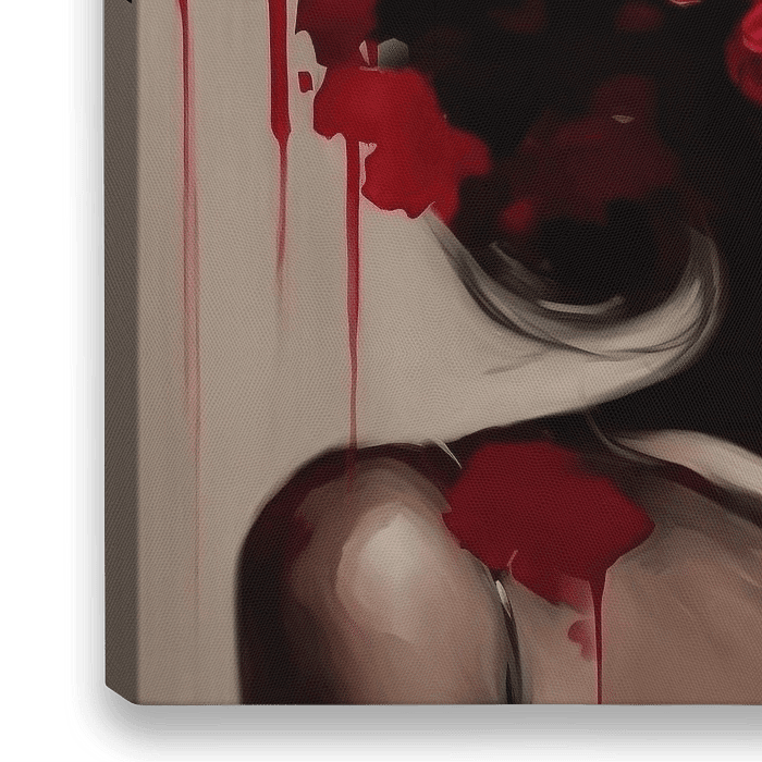 Abstract impressionistisch portret van een vrouw met rode rozen.