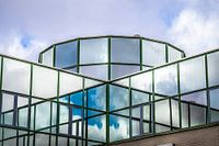 Gebouwen in Heerhugowaard in reflectie in de regen plassen