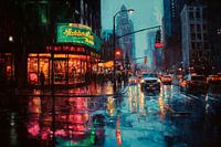 Een zachte regenbui verandert de stad in een glinsterend spektakel, terwijl kleurrijke neonlichten dansen in de plassen. De natte straten weerspiegelen herinneringen en verhalen terwijl auto's rustig door de nacht glijden. Er hangt een vleugje melancholie in de lucht, terwijl het stadsleven onvermoeibaar pulseert, mysterieus en…