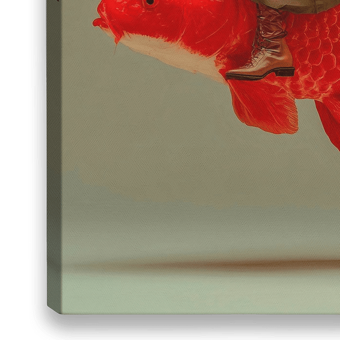 Een surrealistische kunstwerk met een jong meisje zittend op een gigantische goudvis. De algehele compositie moet het fantasierijke karakter van het kunstwerk benadrukken.