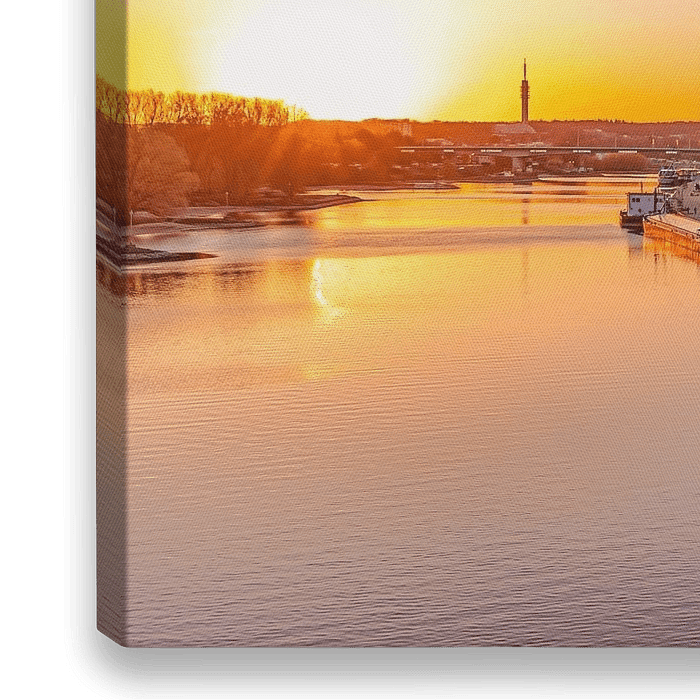 Koop de foto Rijnkade Arnhem tijdens zonsondergang. van Nicky Kapel als print op canvas, aluminium dibond, (ingelijste) fotoprint, behang en ArtFrame. Voor jou op maat geprint in Fine-Art kwaliteit.