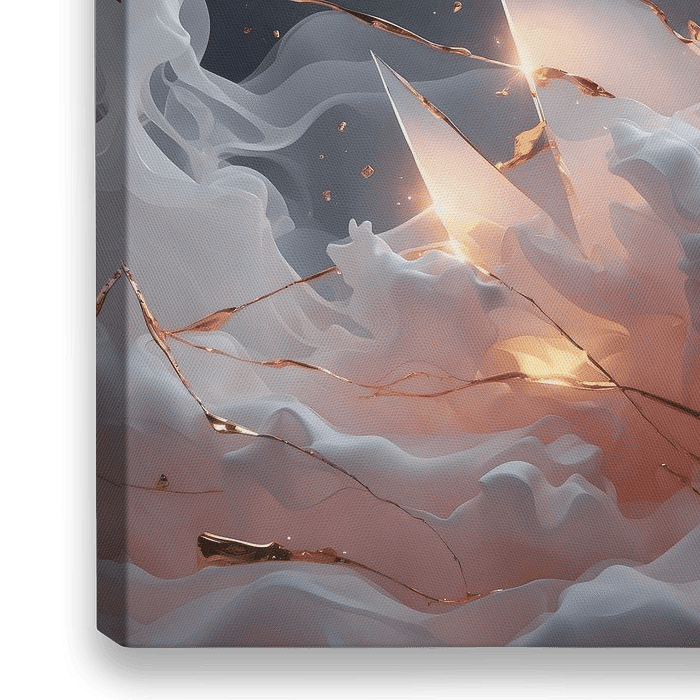 Rising Dawn Fragment vangt het moment waarop licht zich voor het eerst aandient — nog breekbaar, nog onvolledig, maar onmiskenbaar aanwezig. Dit werk verbeeldt geen zonsopkomst zoals we die kennen, maar een fragment ervan: een eerste scheur in de stilte van de nacht, waarin vorm en glans voorzichtig ontstaan.