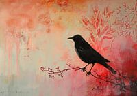 Details: abstract, schilderij, kraai, rood, zwart, vogel, natuur, tak, dier