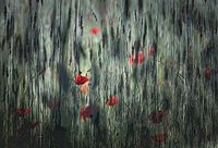 Rode klaprozen in het groene veld met graan. Deze landelijke foto bevat structuur zodat het echt tot leven komt. De groene tint geven je het gevoel dat je midden in de natuur staat.