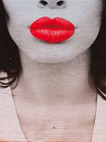 Deze afbeelding is een opvallend pop-artportret dat zich concentreert op de mond en het onderste deel van het gezicht van een vrouw. De compositie is overwegend in zwart-wit, waarbij de felrode lippen een dramatische kleurenpracht toevoegen en meteen de aandacht trekken. De lippen zijn vol en lichtjes samengetrokken, alsof ze een kus…