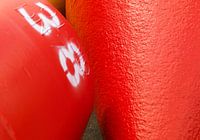 Rode scheepvaart tonnen in verschillende vormen en maten in een tonnen magazijn