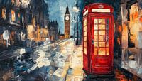 Over ‘Rode telefooncel en big ben in de nacht abstract panorama’ van TheXclusive Art