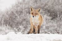 Koop de foto Rode vos in de winter tijdens een sneeuwbui van Menno Schaefer als print op canvas, aluminium dibond, (ingelijste) fotoprint, behang en ArtFrame. Voor jou op maat geprint in Fine-Art kwaliteit.