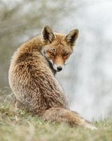 Een vos die nog even omkijkt voordat hij weer uit beeld verdwijnt.